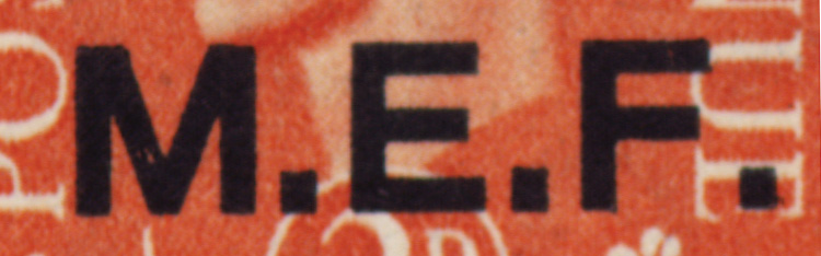 Im Jahr 1950 erlaubte das General Post Office in London die Verwendung aller überdruckten Briefmarken in Grossbritannien, sofern sie den Nennwert nicht verändert hatten. Mit M.E.F. überdruckte Briefmarken können daher auch mit britischen Stempeln gefunden werden. Deren Wert ist gering.